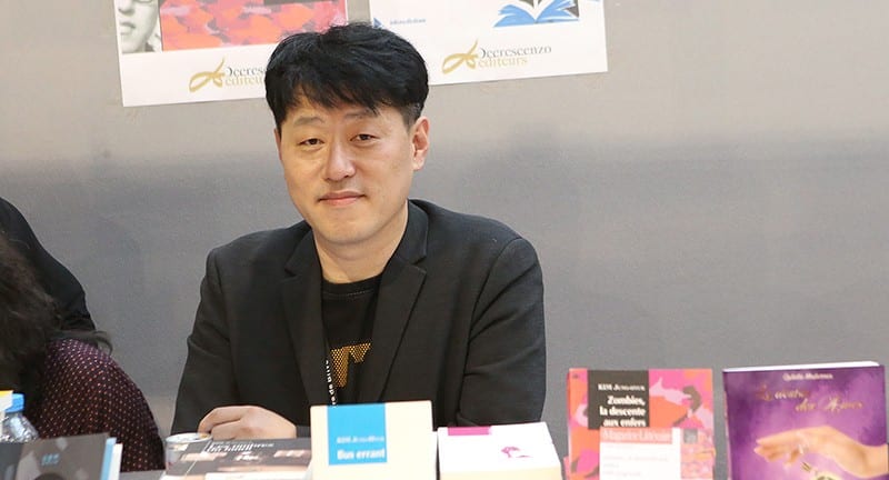 À parcourir sa biographie, faut-il parler d’auteur ou d’artiste ? Kim Jung-Hyuk a été tour à tour web–designer, chroniqueur pour un magazine de cinéma, plume dans un magazine culinaire et de voyage, puis tout à la fois journaliste, DJ, collectionneur, dessinateur (il illustre lui-même ses nouvelles) et écrivain honoré de plusieurs prix dans son pays. Il est aussi auteur pour enfants et se passionne pour l’écriture sur internet tout en animant son site personnel. Une vie déjà bien remplie pour ce touche-à-tout de 45 ans qui va séjourner un mois à Brive à l’occasion de sa résidence d’écriture.